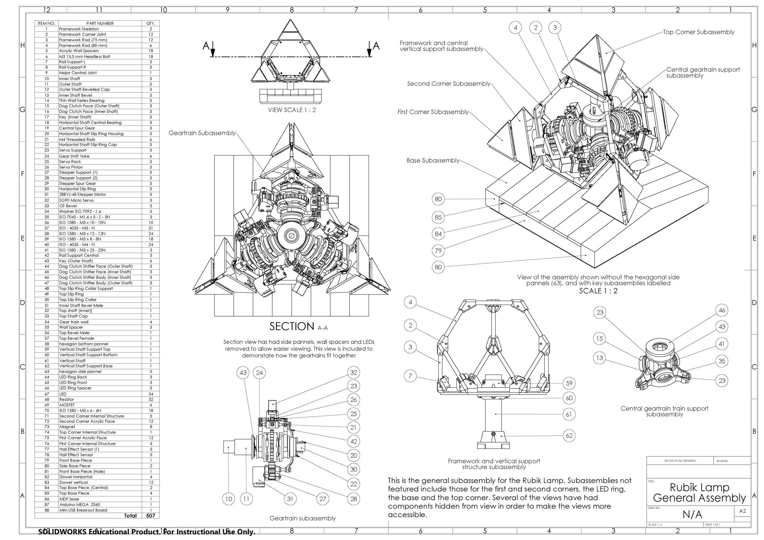 the puzzle has six sections that can be rotated independently using servo and stepper motors